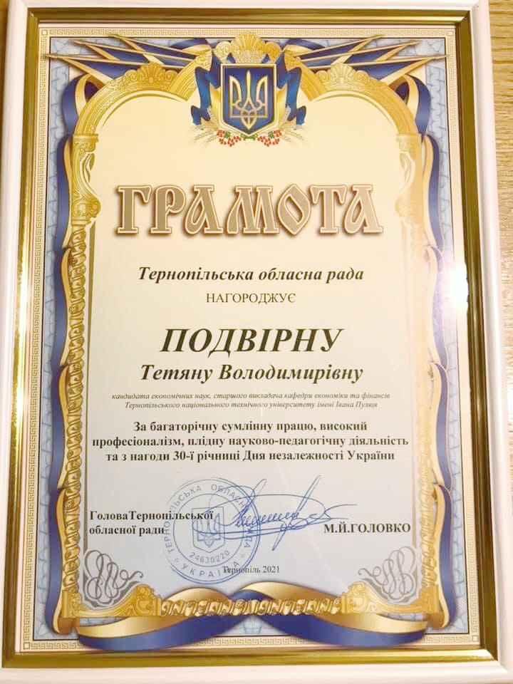 2025р. - доцент кафедри економіки та фінансів ТНТУ